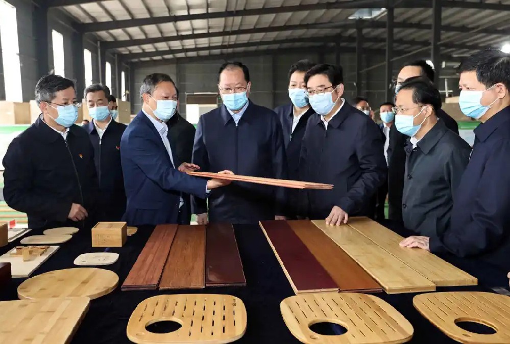 2025年6月16日,省政協(xié)副主席虢正貴來湖南桃花江竹材科技股份有限公司調(diào)研生態(tài)資源轉(zhuǎn)化與特色產(chǎn)業(yè)融合發(fā)展。公司董事長、省人大代表薛志成陪同并介紹情況。虢正貴充分肯定了桃花江竹材在竹資源利用及竹特色產(chǎn)業(yè)融合發(fā)展所取得的成果,他鼓勵企業(yè)繼續(xù)發(fā)揮龍頭優(yōu)勢,充分利用好桃江資源稟賦和產(chǎn)業(yè)優(yōu)勢,深化產(chǎn)學研融合,提升竹產(chǎn)業(yè)附加值,為民族地區(qū)生態(tài)資源高效轉(zhuǎn)化和特色產(chǎn)業(yè)融合發(fā)展探索更多經(jīng)驗。